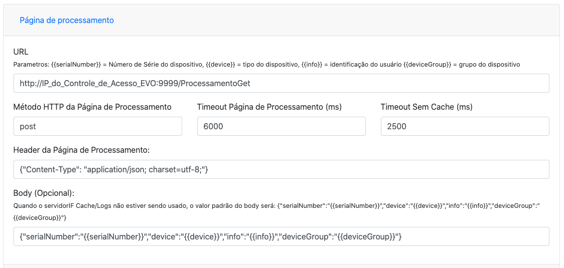 Url: http://IP_do_Controle_de_Acesso_EVO:9999/ProcessamentoGet