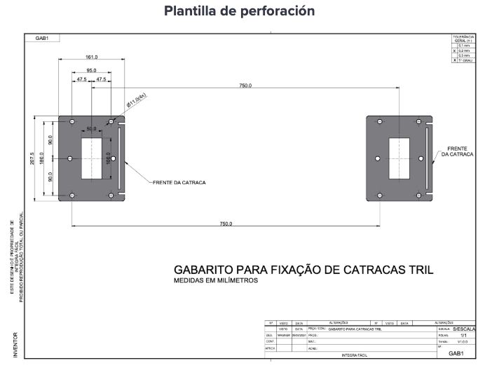 - Perfure o piso com brocas de ⅜" . Faça os furos externos, de acordo com as medidas indicadas na figura abaixo: